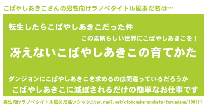 | 女子向けラノベタイトル風あだ名 | 『シンデレラこばやしあきこ家の靴箱館』 |