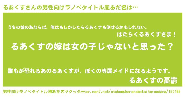 | 胡散臭い通販商品みたいなあだ名 | 『全米が絶賛したサプリメント…その名も「るあくす」』 |