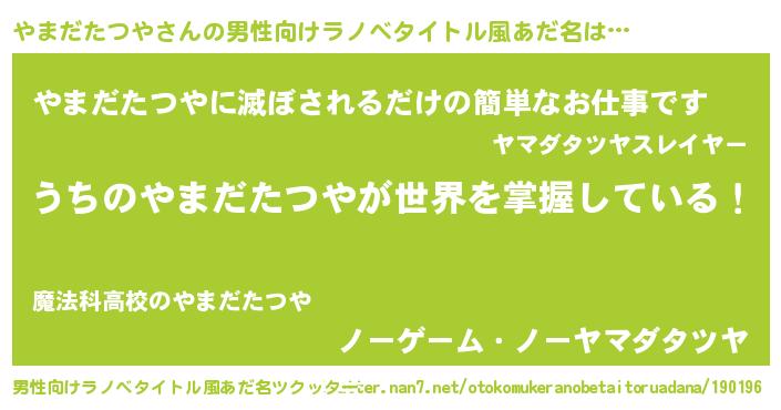 | 女子向けラノベタイトル風あだ名 | 『男装やまだたつやの憂鬱な任務』 |