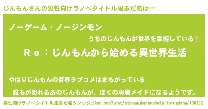 じんもんさんの男性向けラノベタイトル風あだ名をツクッター!