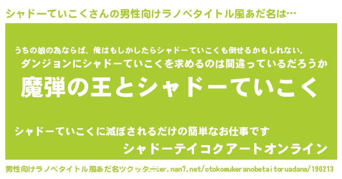 | 意味不明あだ名 | 『住所不定無職シャドーていこく(86歳)』 |