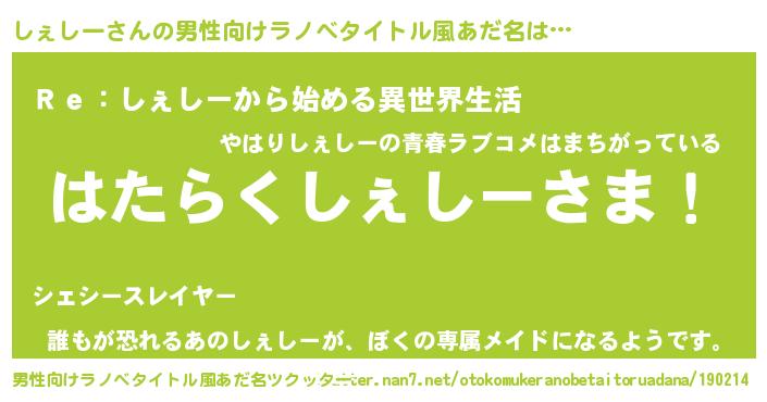 | ヘコむあだ名 | 『しぇしー(笑)』『レバニラ』 |
