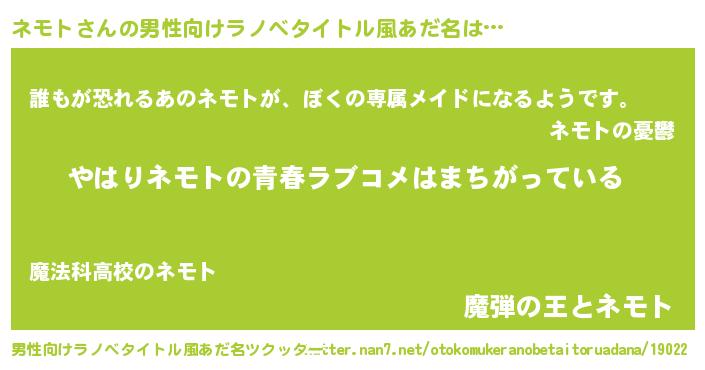 | ヒーロー風カッコイイあだ名 | 『ウルトラネモトマン』『ネオネモト』 |
