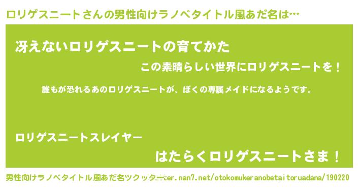 | ヘコむあだ名 | 『ロリゲスニート(笑)』『ロリお』 |