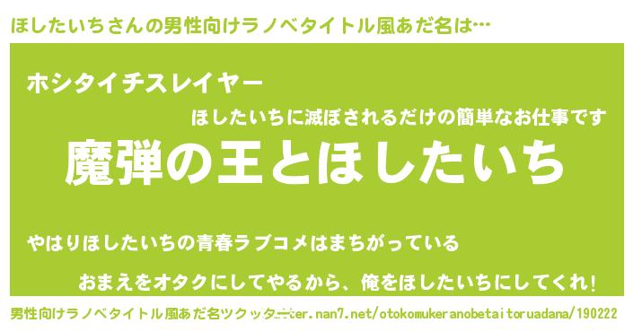 | 意味不明あだ名 | 『住所不定無職ほしたいち(59歳)』 |