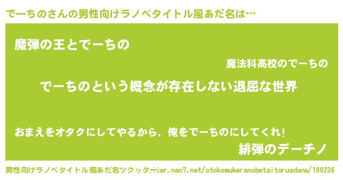 | 女子向けラノベタイトル風あだ名 | 『異世界で失敗しない100のでーちの』 |