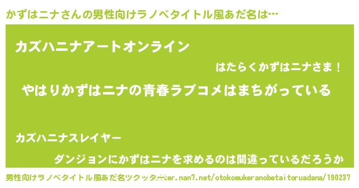 | 女子向けラノベタイトル風あだ名 | 『かずはニナの雑貨屋さん』 |