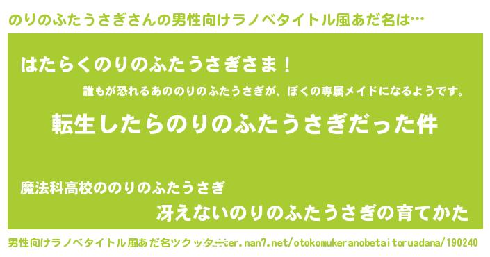 | 伝説のあだ名 | 『古より伝わる勇者のりのふたうさぎ』 |