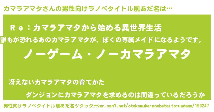| 女子向けラノベタイトル風あだ名 | 『カマラアマタ恋絵巻』 |