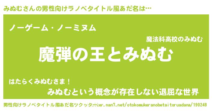 | ヒーロー風カッコイイあだ名 | 『仮面ミヌダー』『天空の使者みぬむ』 |