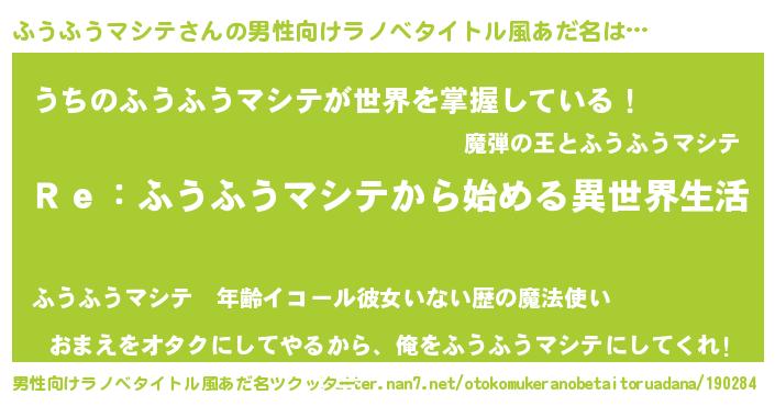 | 意味不明あだ名 | 『自称ふうふうマシテ』 |