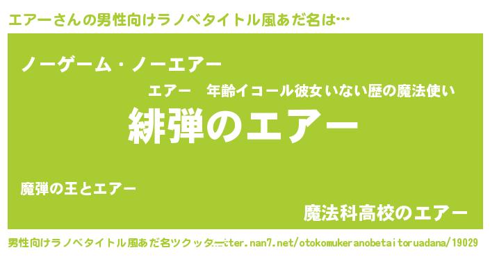 | ヒーロー風カッコイイあだ名 | 『正義の使者エアー』『超時空戦士エアー』 |
