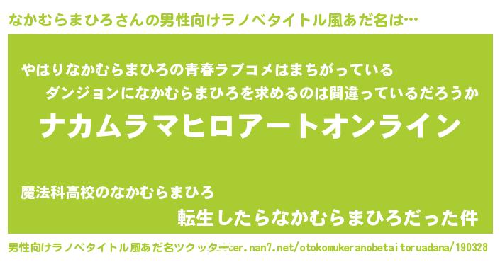| 女子向けラノベタイトル風あだ名 | 『誰かこのなかむらまひろを説明してください! ~契約から始まるウェディング~』 |