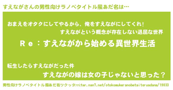 | 女子向けラノベタイトル風あだ名 | 『闇のすえなが』『すえなが恋絵巻』 |