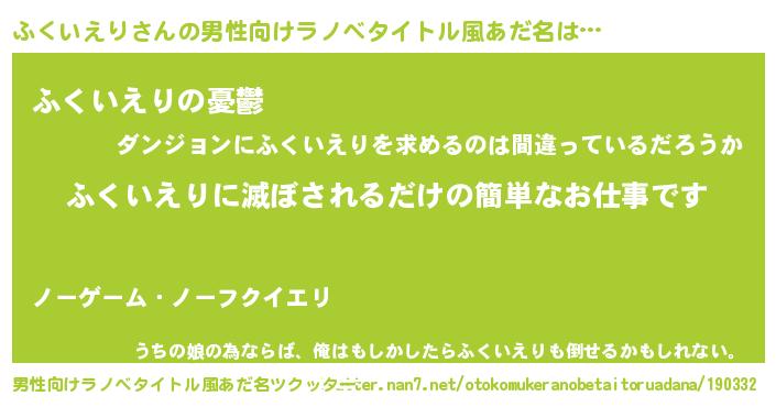 | ヒーロー風カッコイイあだ名 | 『スーパーフクイエリ』『幻影騎士フク』 |