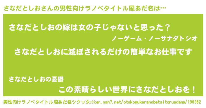 | 意味不明あだ名 | 『とにかく怪しいさなだとしお』 |