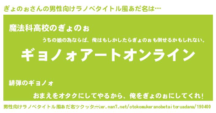| 意味不明あだ名 | 『ペロリンぎょのぉ』『自称ぎょのぉ』 |
