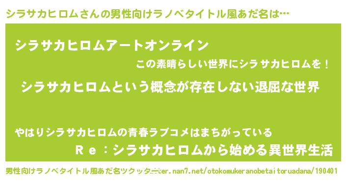 | ヘコむあだ名 | 『シラサカヒロム(小並感)』『シラにー』 |