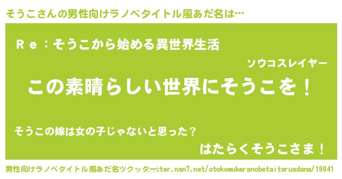 | 意味不明あだ名 | 『住所不定無職そうこ(86歳)』『自称そうこ』 |
