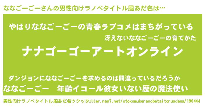 | 女子向けラノベタイトル風あだ名 | 『誰かこのななごーごーを説明してください! ~契約から始まるウェディング~』 |