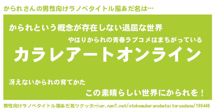 | ヘコむあだ名 | 『からにゅー』『かられ(遠い目)』 |