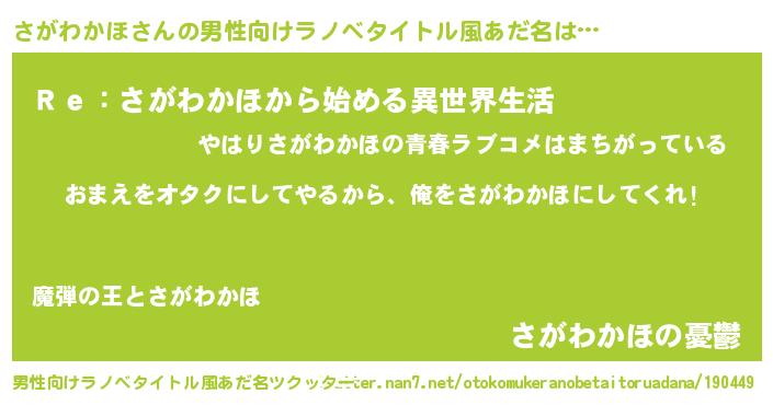 | ヒーロー風カッコイイあだ名 | 『正義の使者さがわかほ』『仮面サガダー』 |