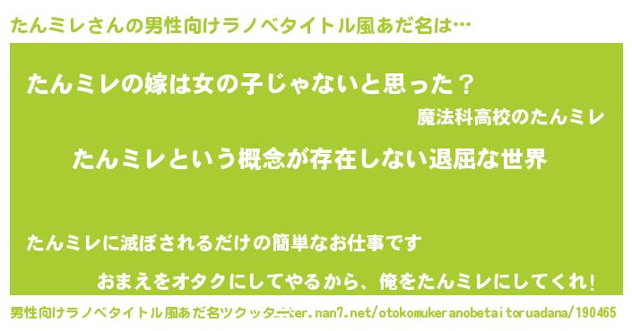 | 胡散臭い通販商品みたいなあだ名 | 『絶対に幸福をもたらす健康食品…その名も「たんミレ」』 |