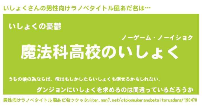 | 女子向けラノベタイトル風あだ名 | 『いしょくなんてお断りですっ。』 |