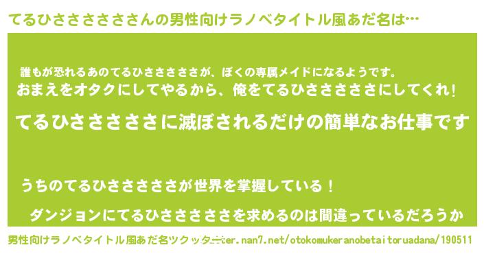 | 伝説のあだ名 | 『古文書に記された勇者てるひさささささ』 |