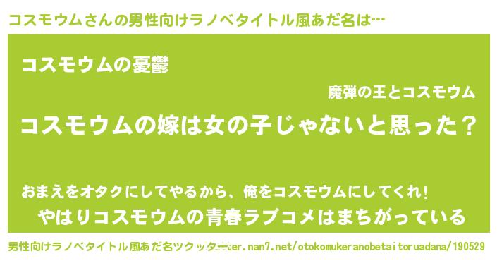 | 女子向けラノベタイトル風あだ名 | 『コスモウム様がみてる』 |