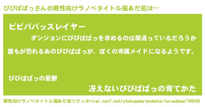 | ヒーロー風カッコイイあだ名 | 『ネオビビババッ』『暗黒騎士ビビ』 |