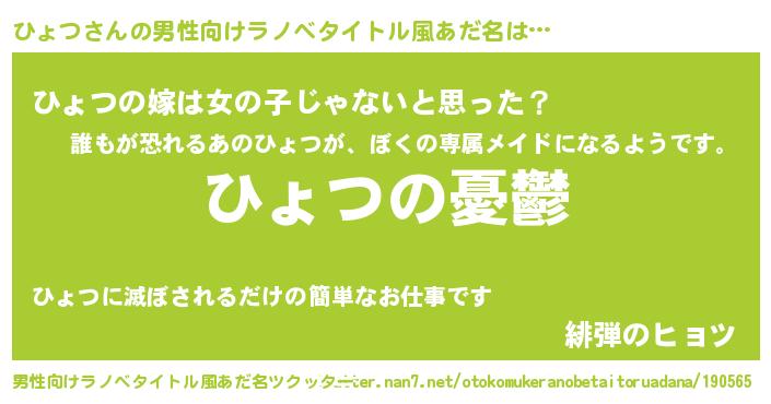 | 女子向けラノベタイトル風あだ名 | 『(仮)ひょつのやんごとなき事情』 |