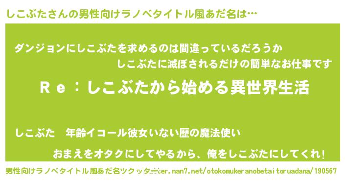 | 女子向けラノベタイトル風あだ名 | 『しこぶたストレイドッグス』 |