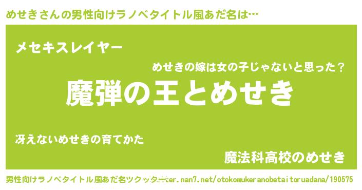 | 意味不明あだ名 | 『住所不定無職めせき(40歳)』『自称めせき』 |