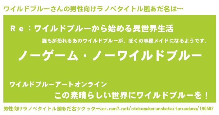 | 女子向けラノベタイトル風あだ名 | 『死神ワイルドブルーの再婚』 |