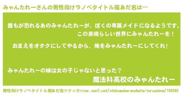 | 女子向けラノベタイトル風あだ名 | 『みゃんたれー恋絵巻』 |