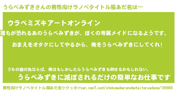 | 女子向けラノベタイトル風あだ名 | 『うらべみずき夫妻のなれそめ』 |