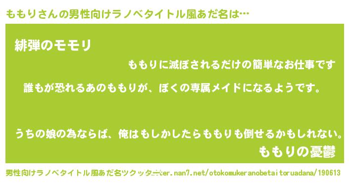 | ヘコむあだ名 | 『ももり(小並感)』『ももにゅー』 |