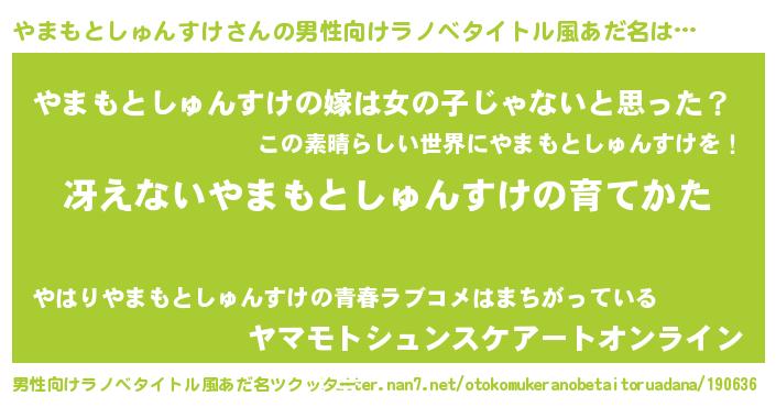 | 胡散臭い通販商品みたいなあだ名 | 『伝統あるサプリメント…その名も「やまもとしゅんすけ」』 |