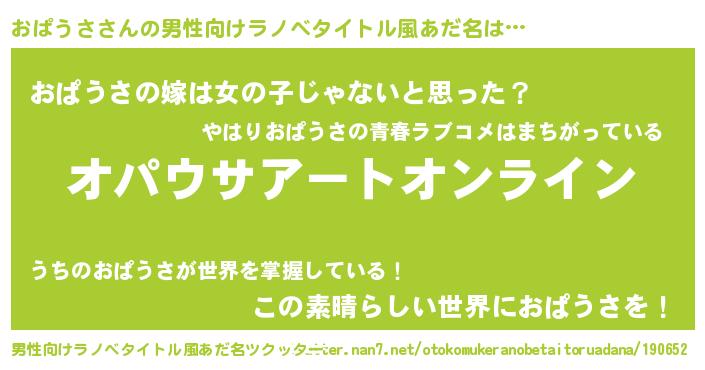 | 胡散臭い通販商品みたいなあだ名 | 『億万長者になれるブレスレット…その名も「おぱうさ」』 |