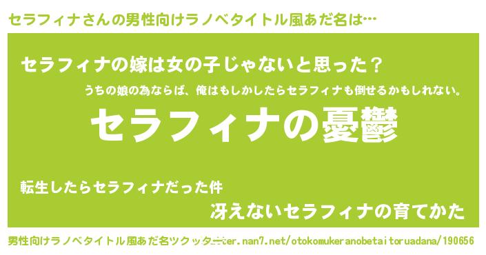 | 女子向けラノベタイトル風あだ名 | 『(仮)セラフィナのやんごとなき事情』 |