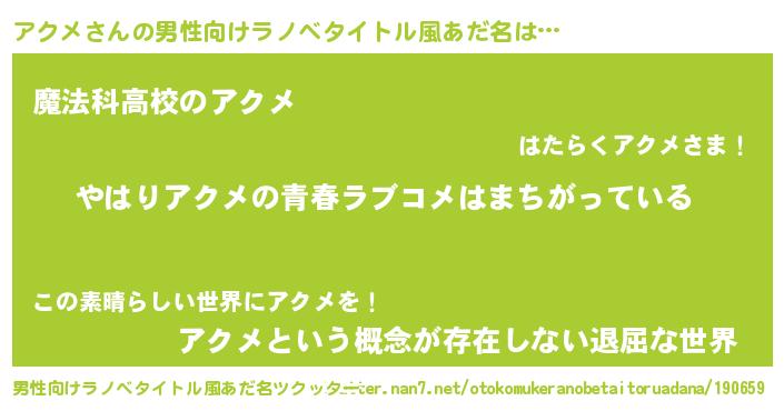 | ファンタジー風あだ名 | 『エターナルアクメー』『ゼアクトゥ』 |