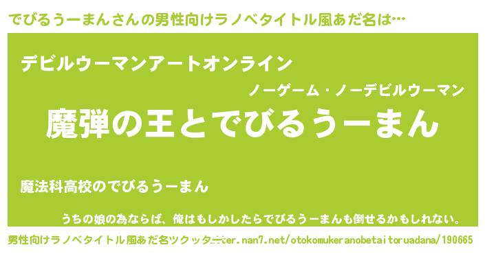| 女子向けラノベタイトル風あだ名 | 『乙女ゲームの破滅フラグしかない悪役でびるうーまんに転生してしまった…』 |