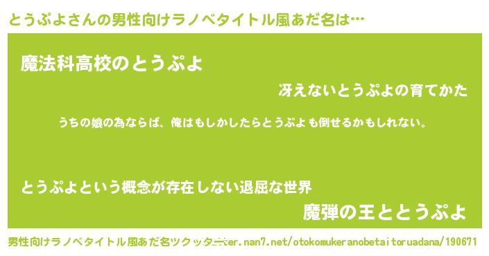 | 意味不明あだ名 | 『とうぷよフォーエバー』『自称とうぷよ』 |