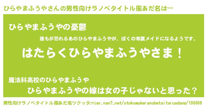 | 胡散臭い通販商品みたいなあだ名 | 『必ず成功するブレスレット…その名も「ひらやまふうや」』 |