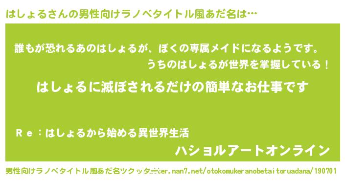 | ヒーロー風カッコイイあだ名 | 『ネオハショル』『スーパーハショル』 |