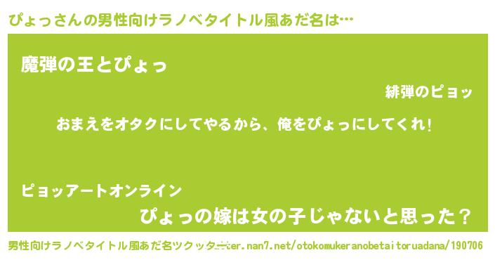 | 女子向けラノベタイトル風あだ名 | 『ぴょっ夫妻のなれそめ』 |
