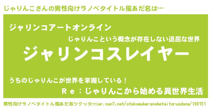 | 胡散臭い通販商品みたいなあだ名 | 『必ず成功する霊験あらたかなお札…その名も「じゃりんこ」』 |