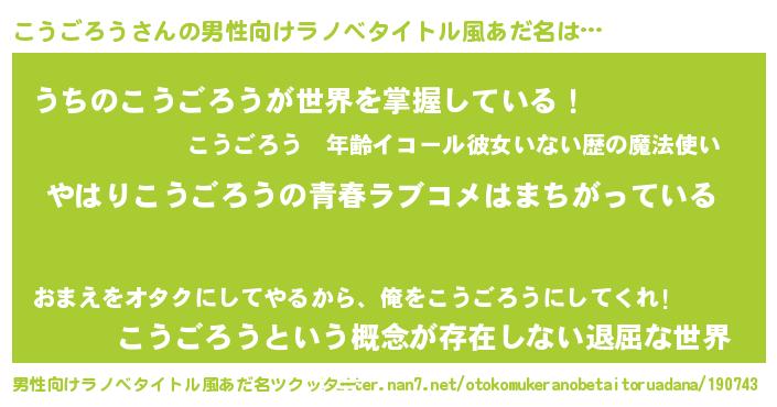 | ファンタジー風あだ名 | 『エターナルコウゴロウー』 |