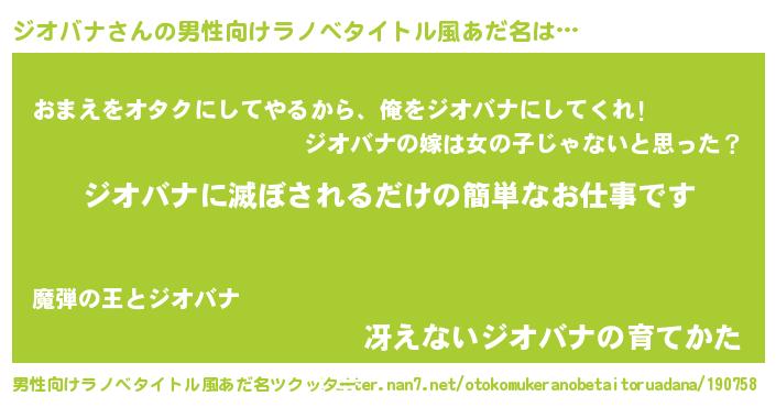 | ヒーロー風カッコイイあだ名 | 『慈愛の使者ジオバナ』『魔戒騎士ジオ』 |